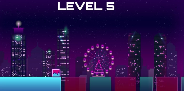 Each platform matches the color of the level rhythm. It’s helpful to study the color sequence, feel the tempo, and anticipate the beat while following the rhythm.